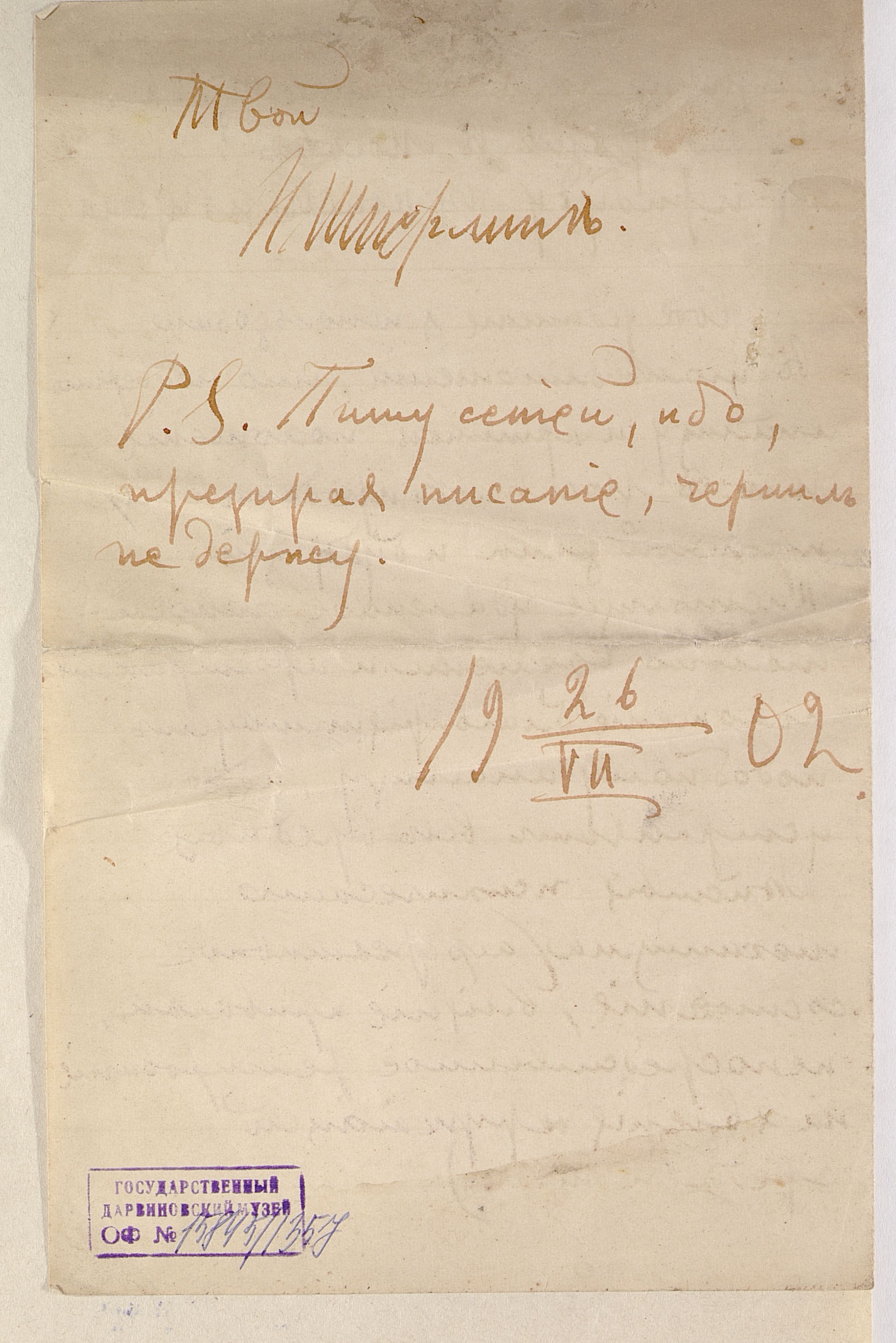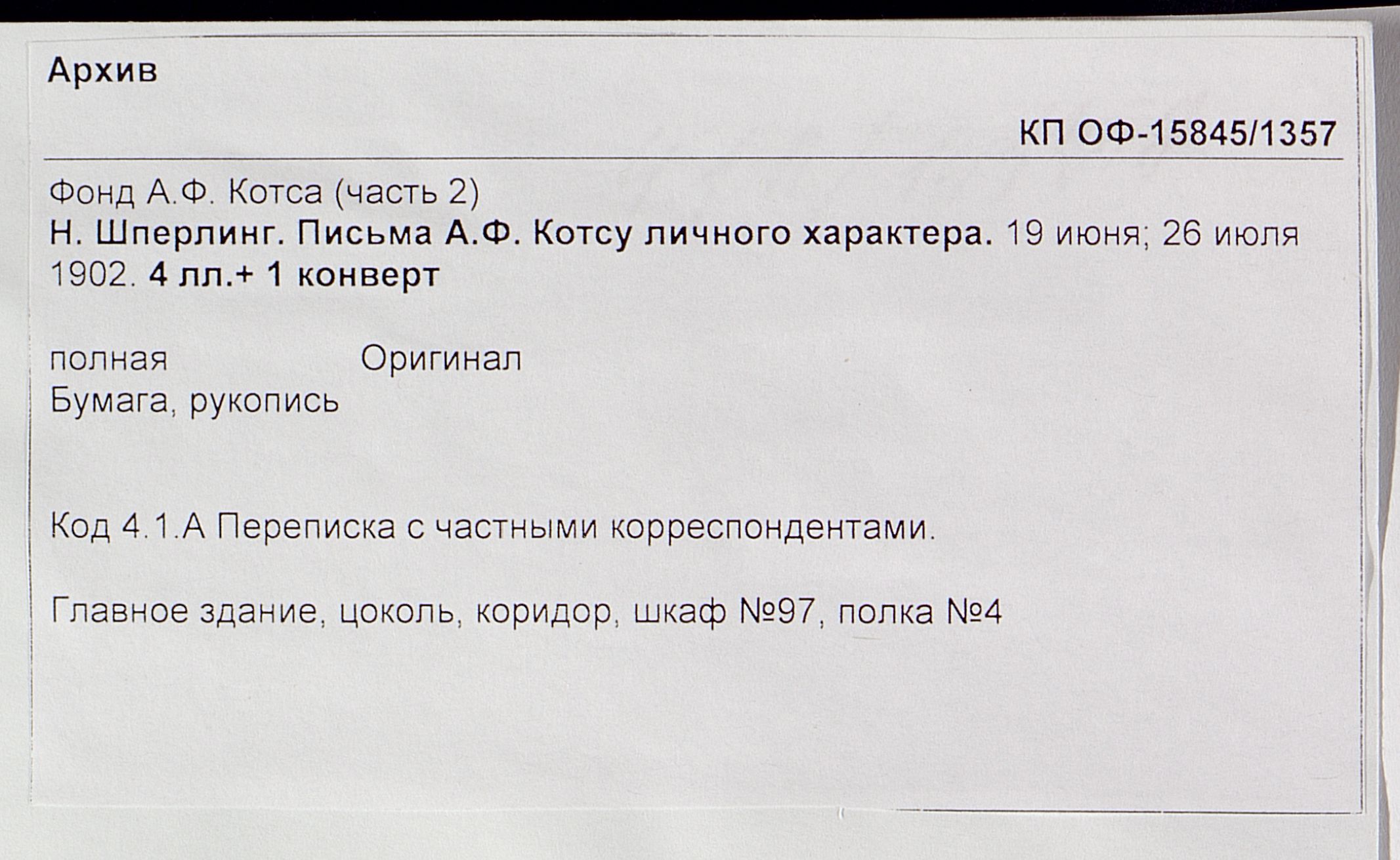 Н. Шперлинг. Письма А.Ф. Котсу личного характера
