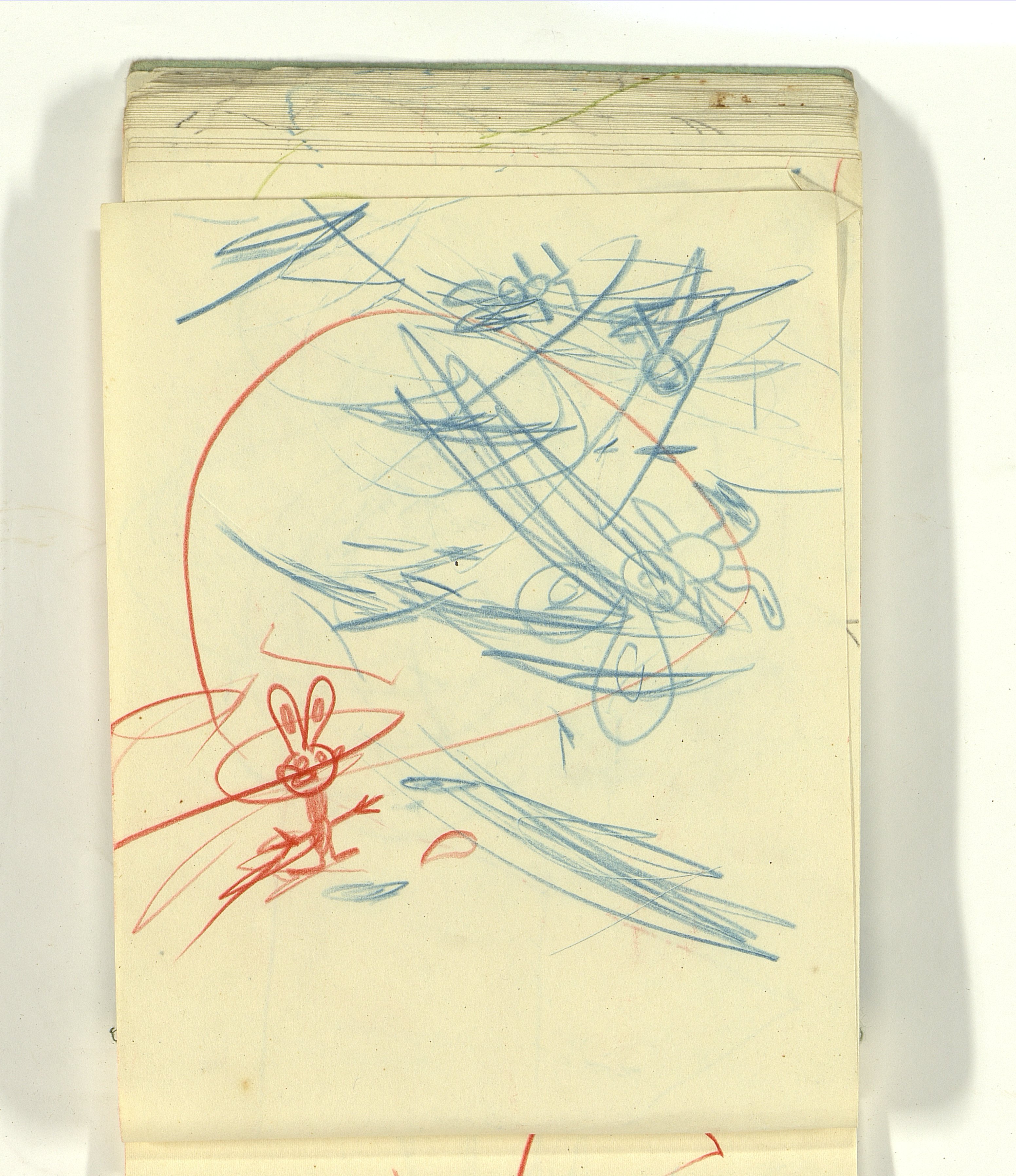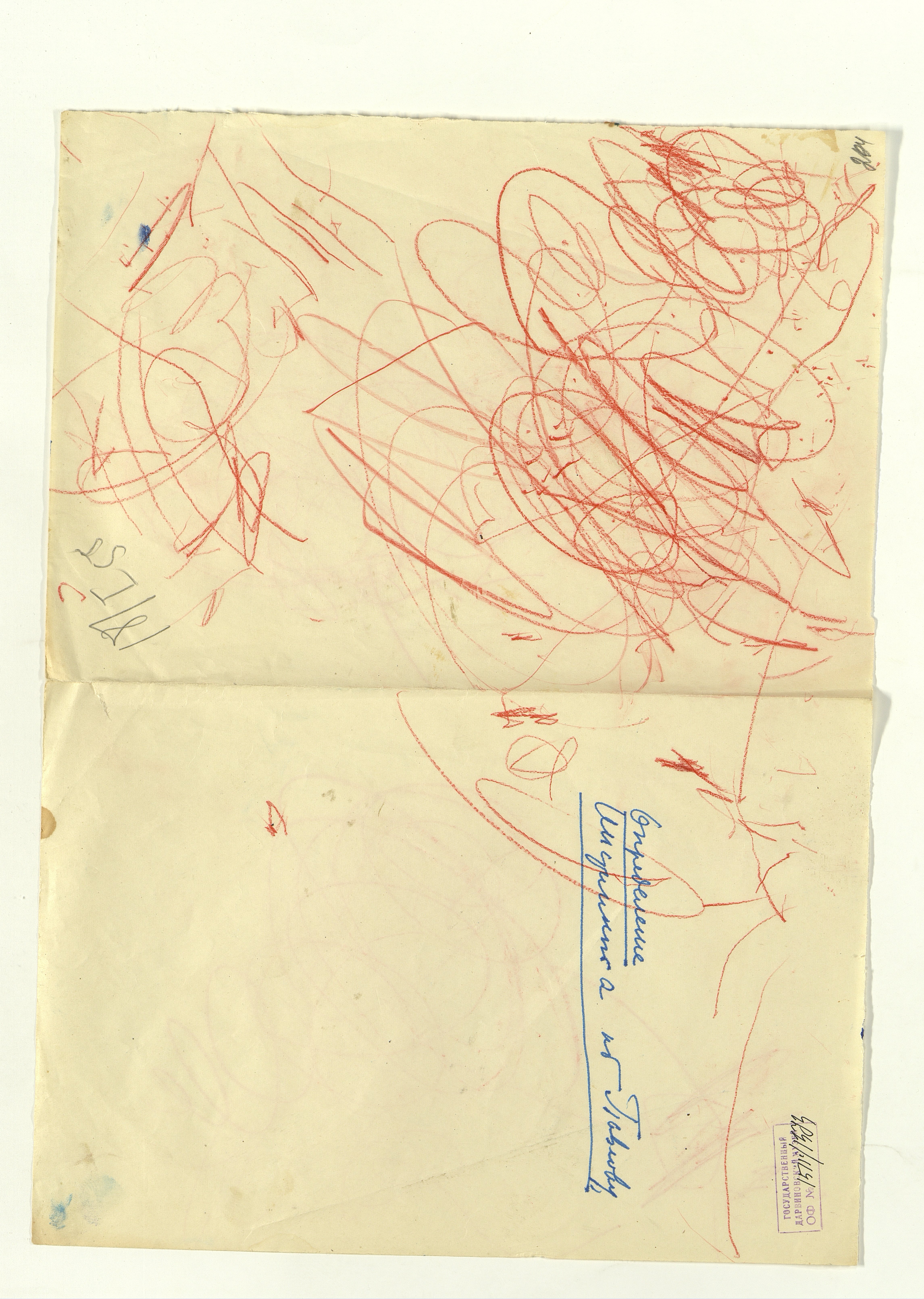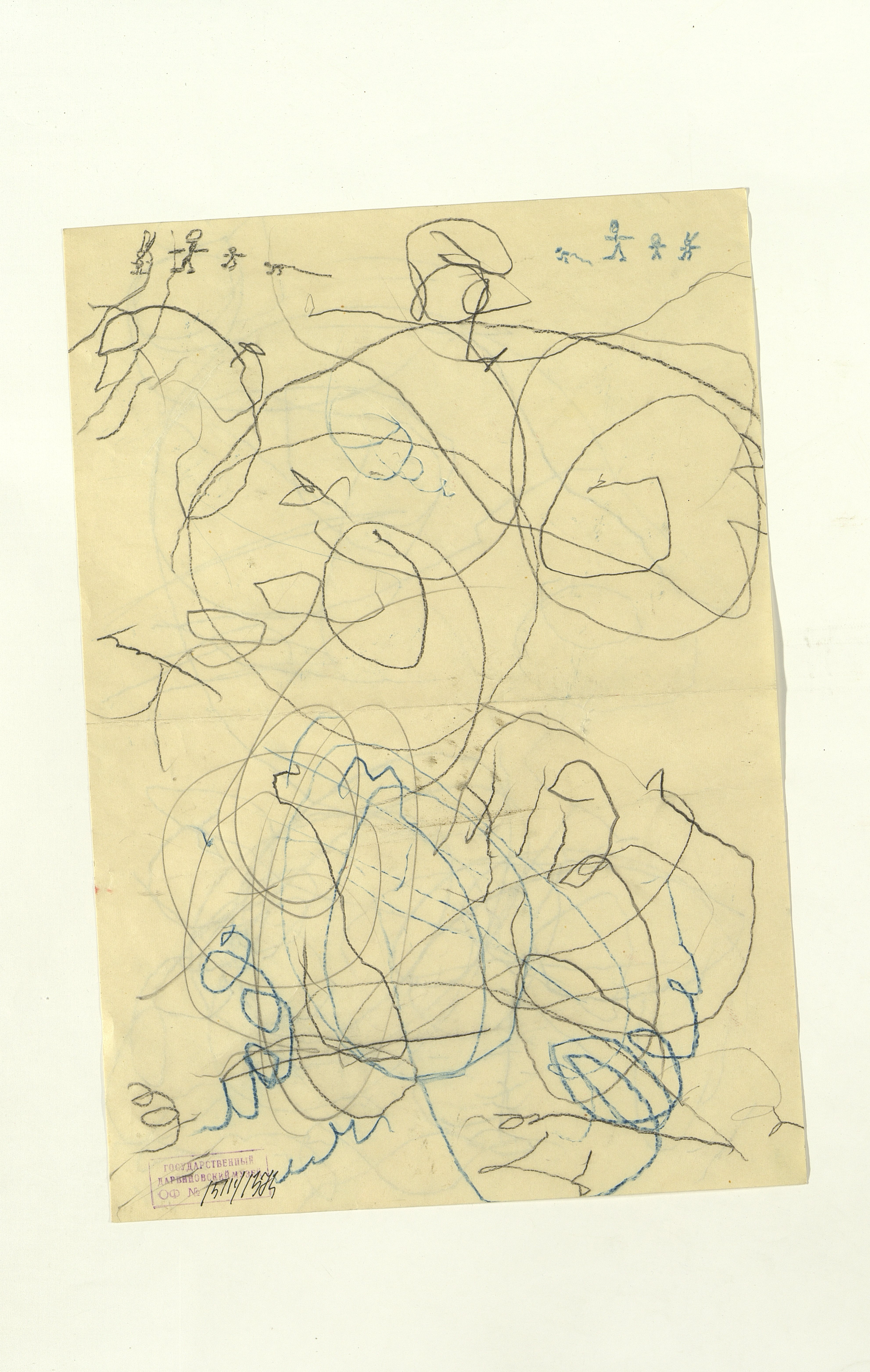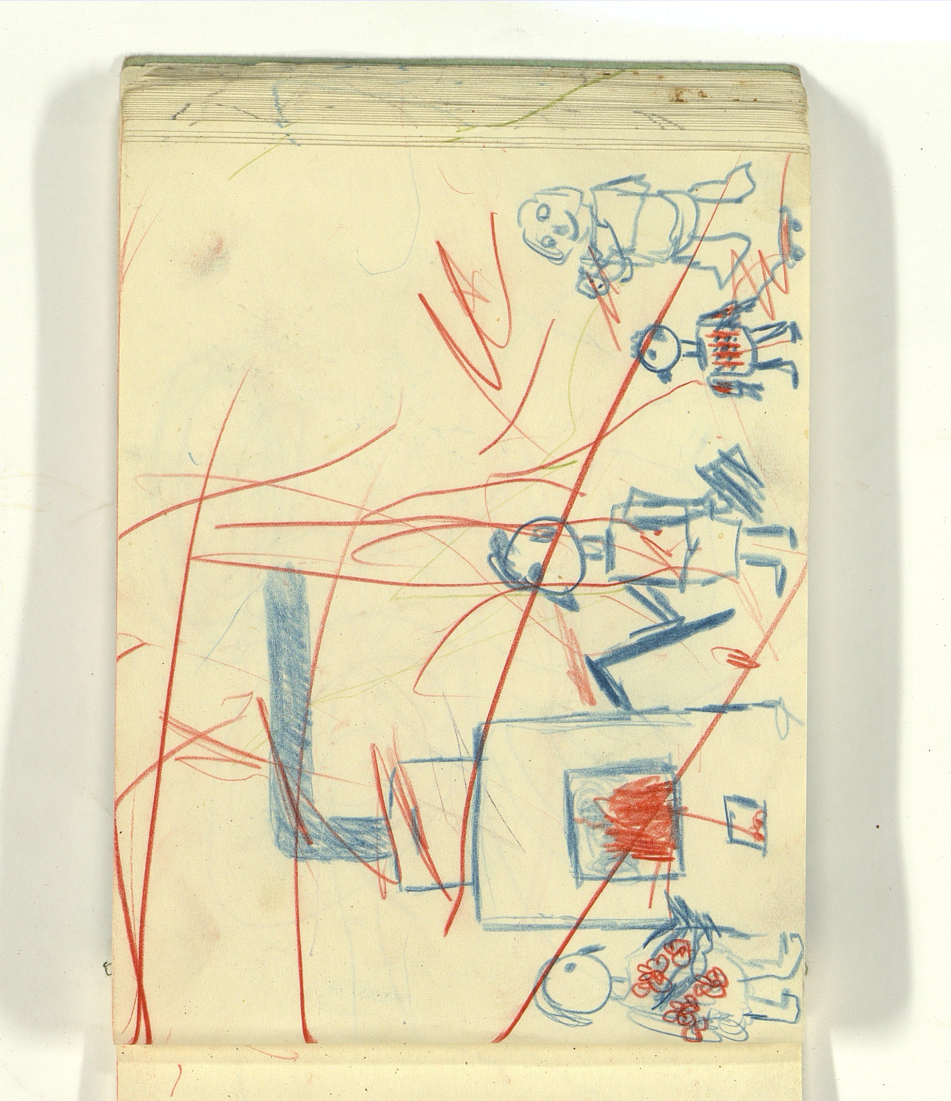 ОФ-15111/1373 Рисунки Сережи Котса (С.Р. Котса), внука Н.Н. Ладыгиной-Котс.. 2 блокнота; отдельные листы. Время создания: б/г; 1954-1956. Полнота: полная. Подлинность: оригинал. Способ воспроизведения: рукопись, бумага. Хранение: хр. №112, стеллаж №2, полка №7. Примечания: 212 лл., из старых поступлений, Без видимых повреждений, г. Москва
