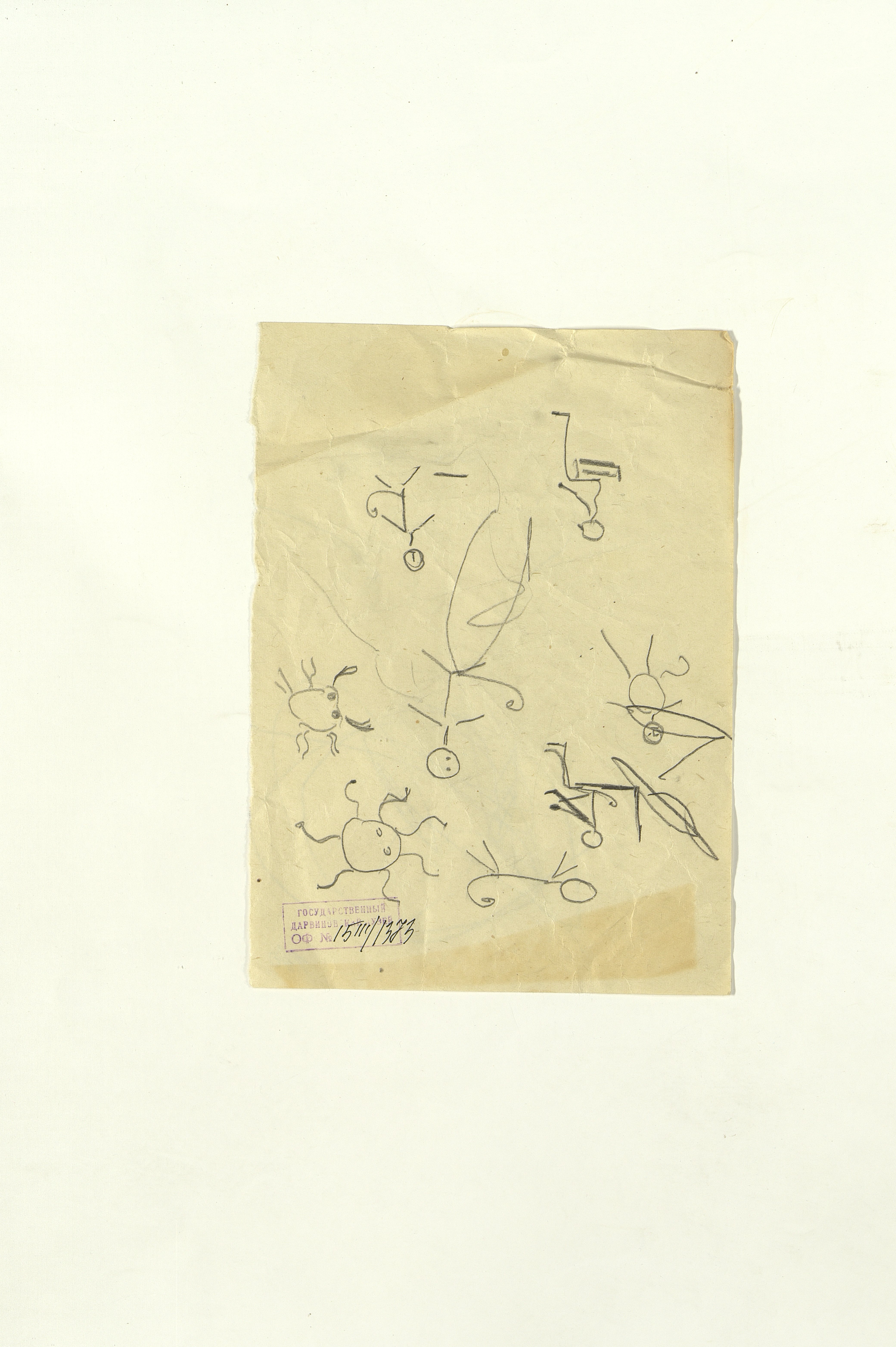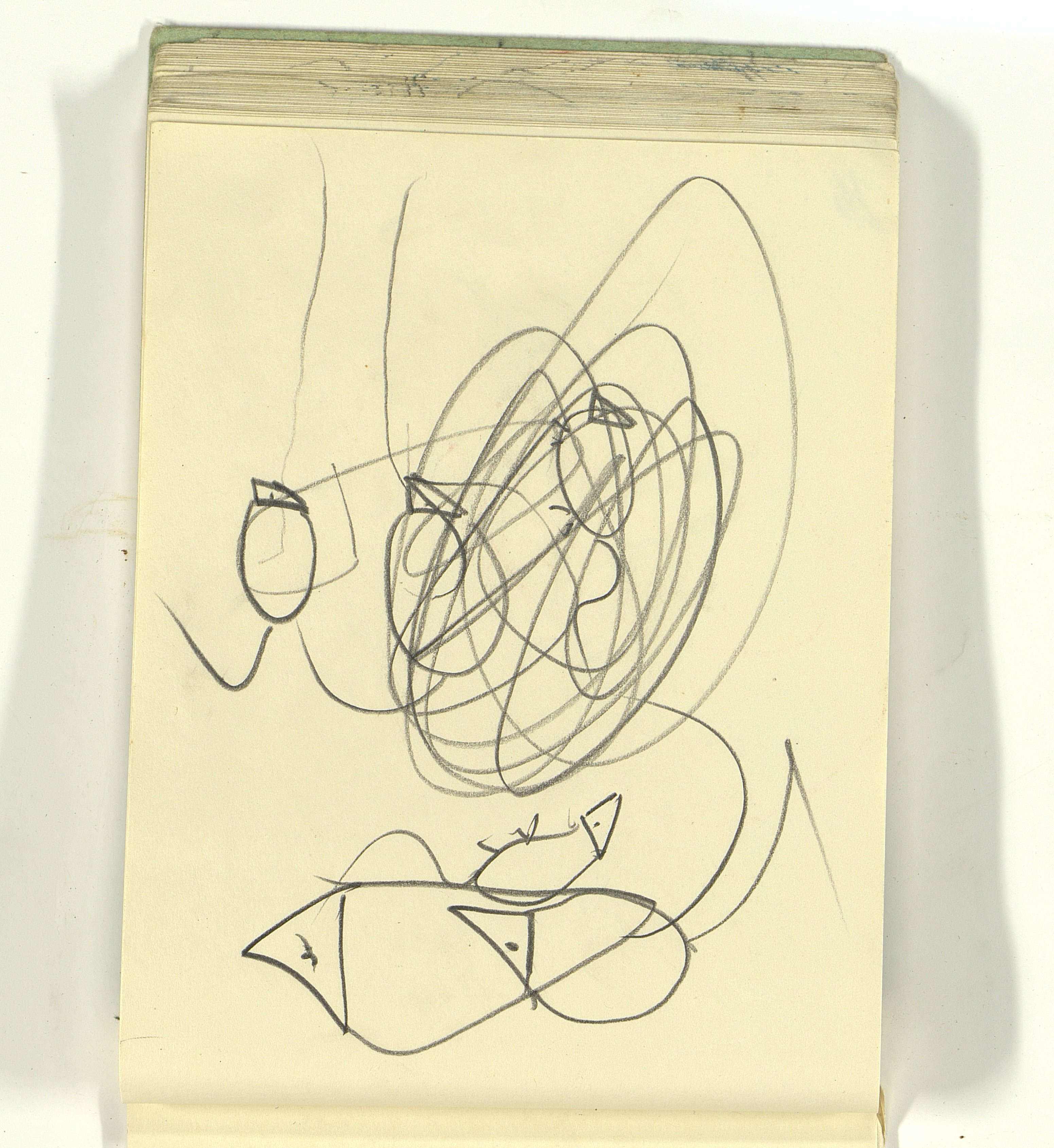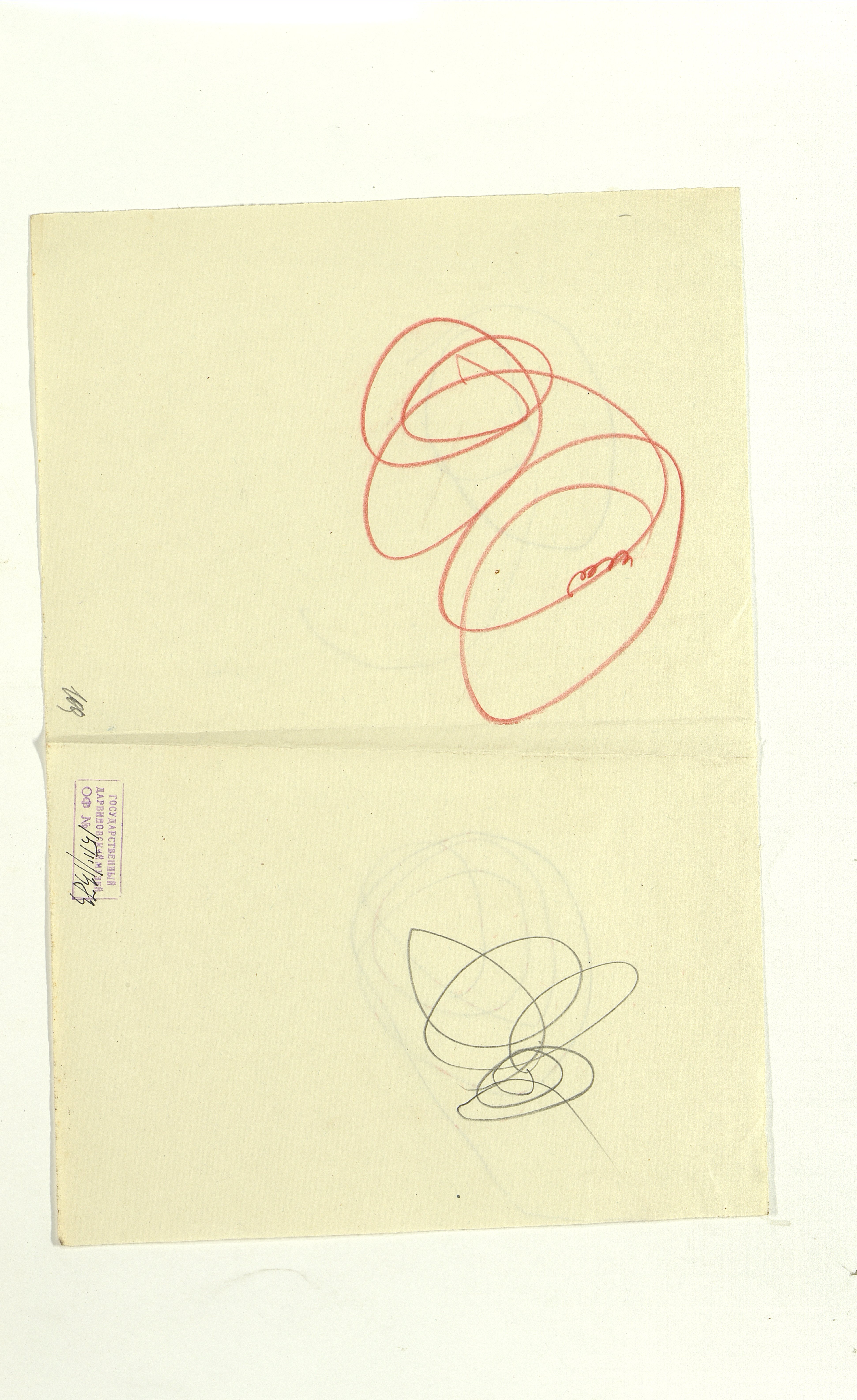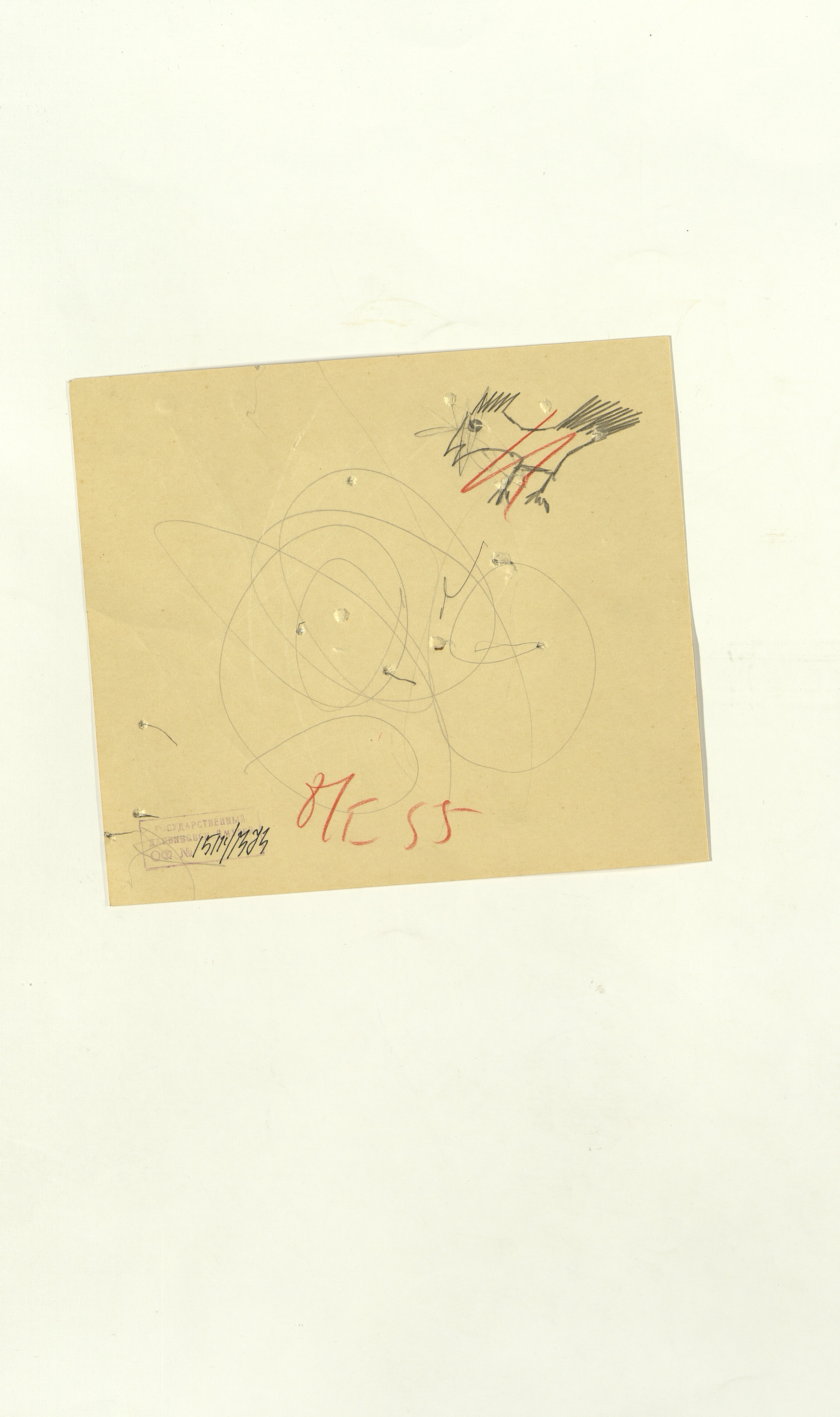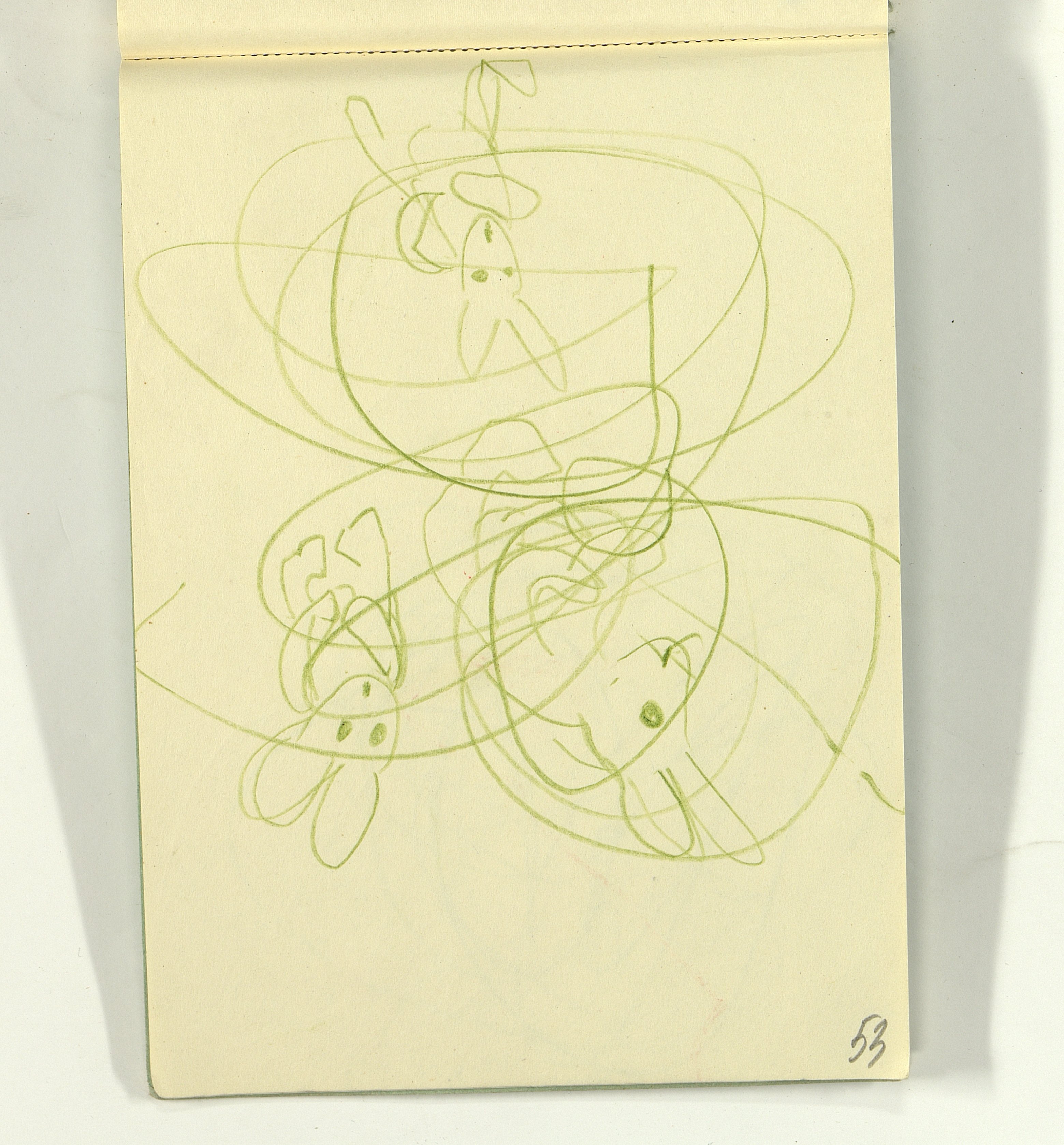 ОФ-15111/1373 Рисунки Сережи Котса (С.Р. Котса), внука Н.Н. Ладыгиной-Котс.. 2 блокнота; отдельные листы. Время создания: б/г; 1954-1956. Полнота: полная. Подлинность: оригинал. Способ воспроизведения: рукопись, бумага. Хранение: хр. №112, стеллаж №2, полка №7. Примечания: 212 лл., из старых поступлений, Без видимых повреждений, г. Москва