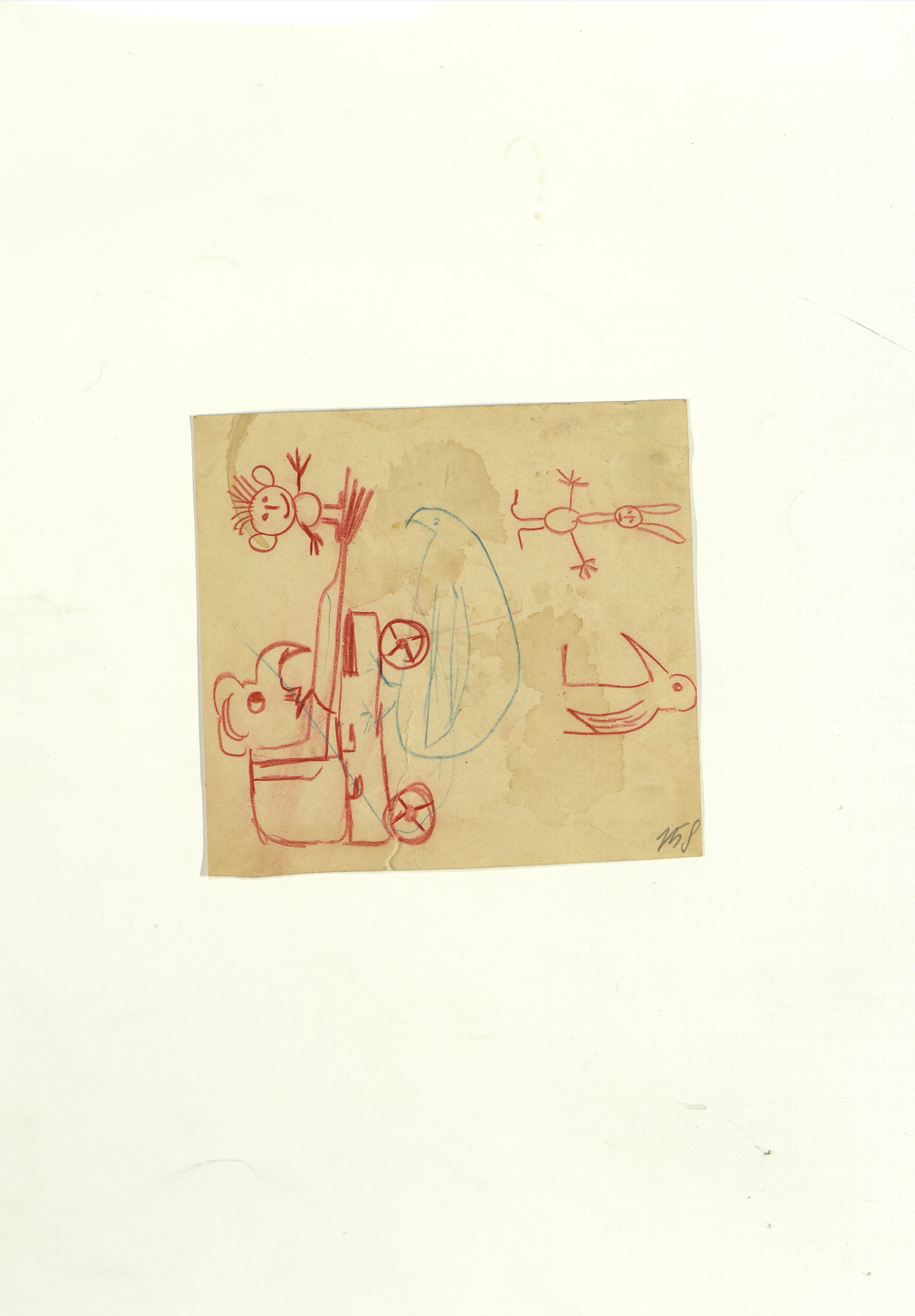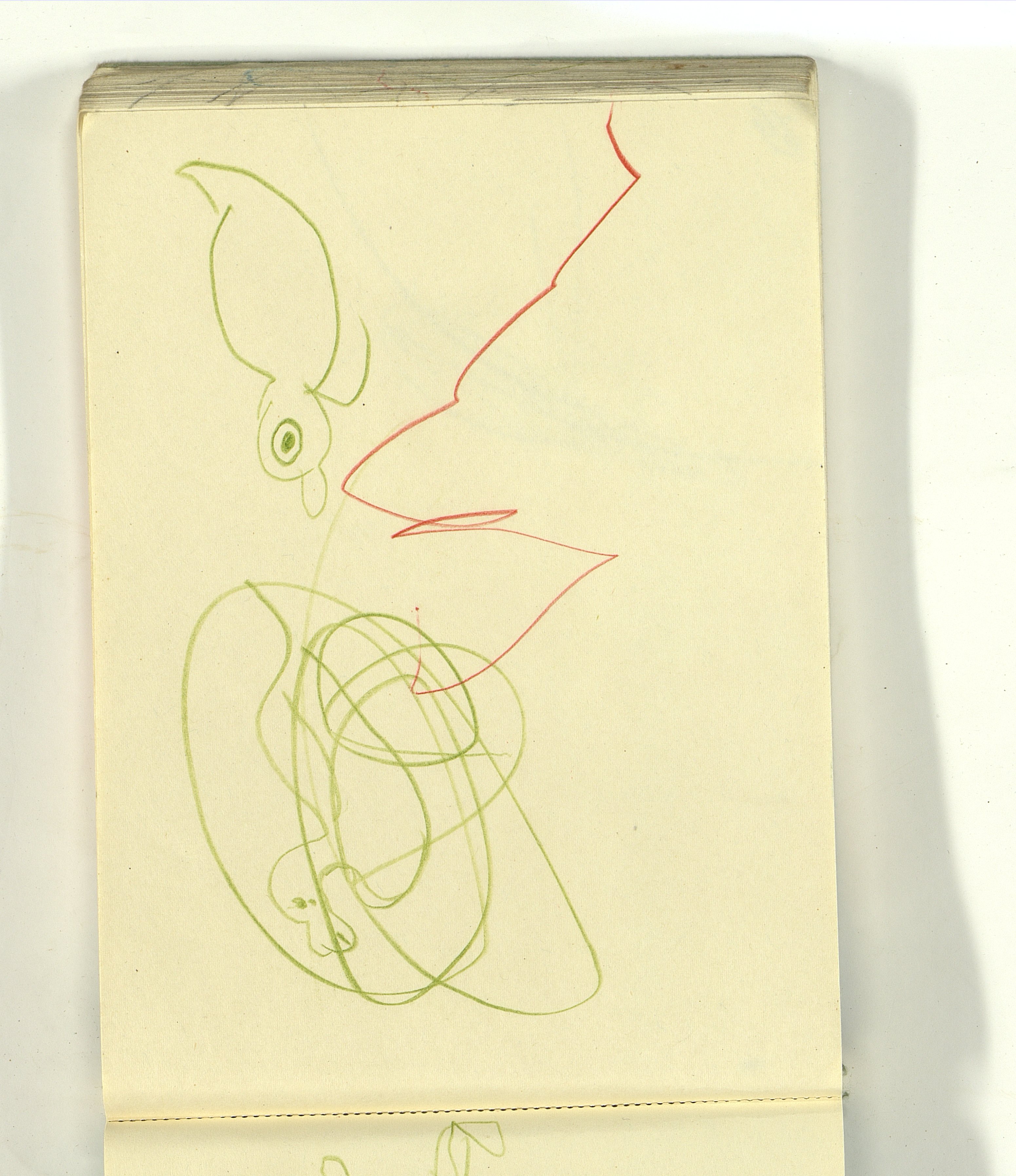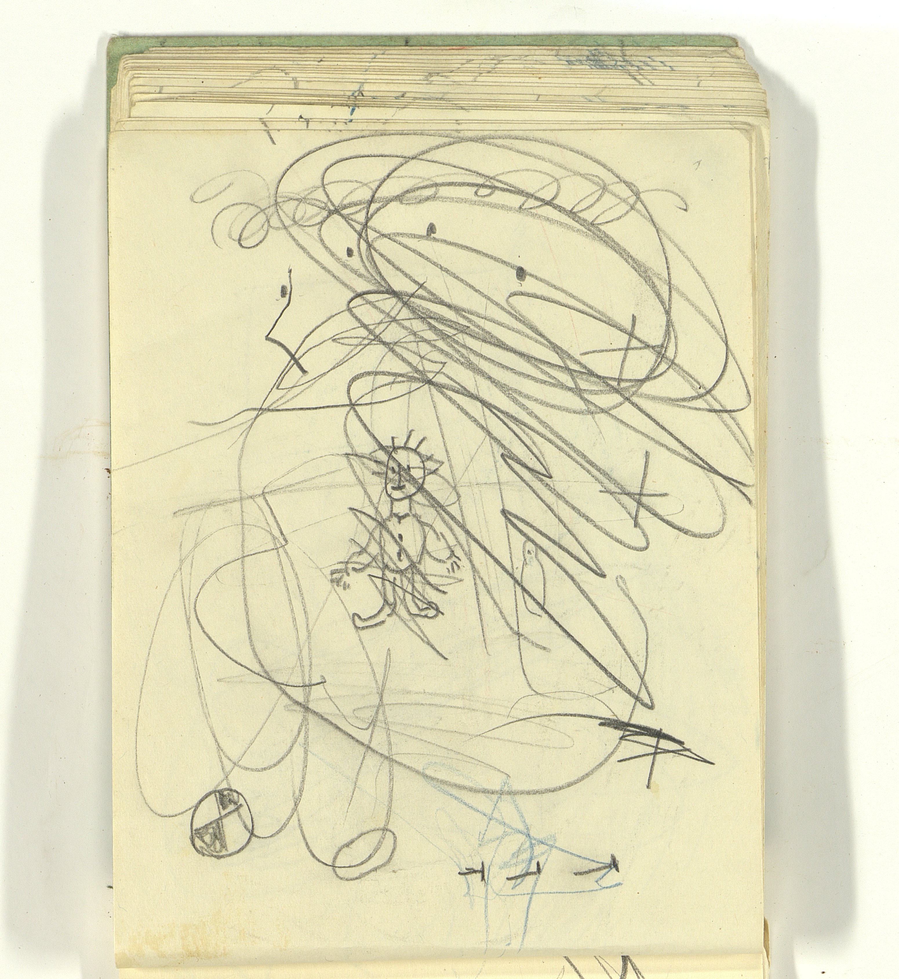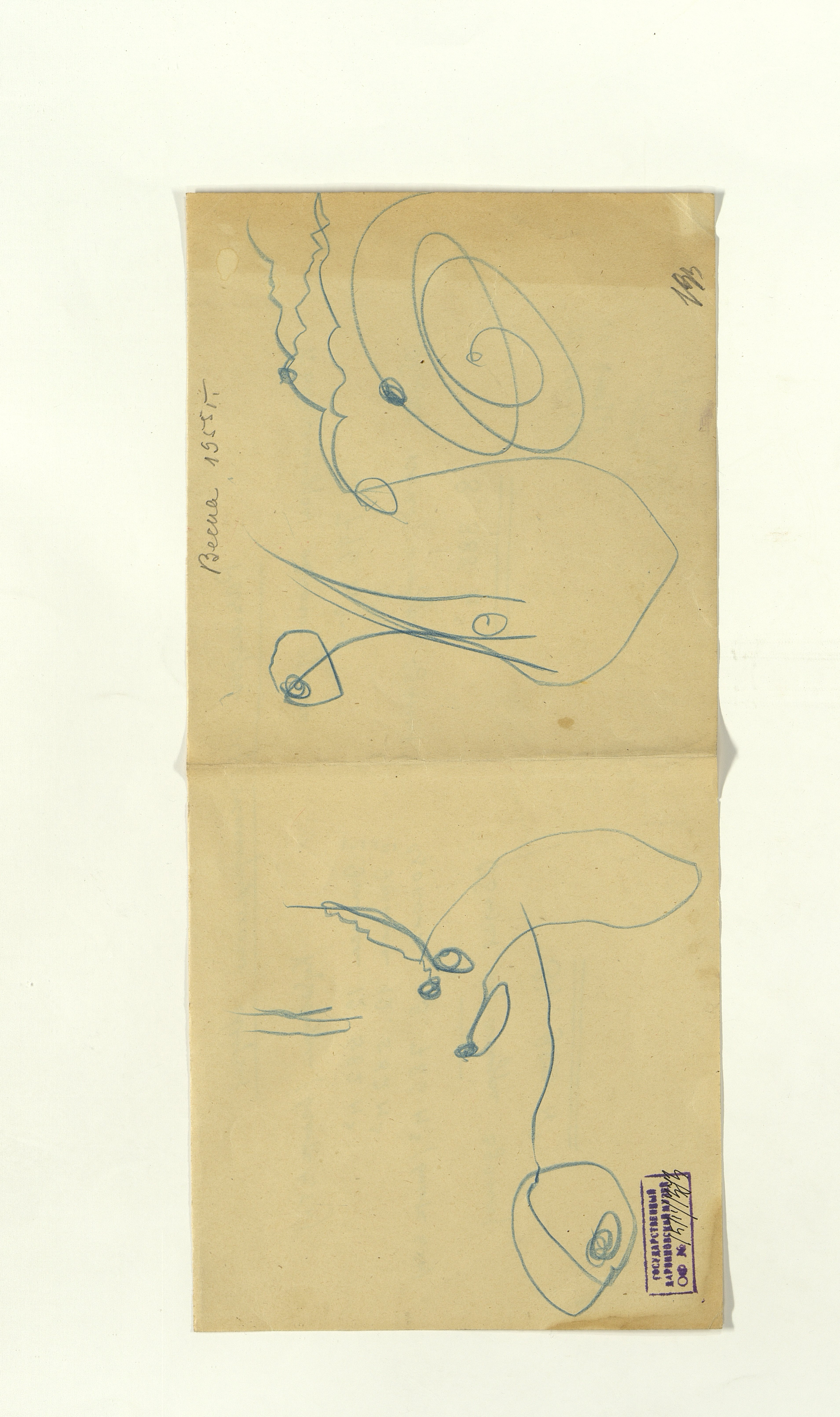 ОФ-15111/1373 Рисунки Сережи Котса (С.Р. Котса), внука Н.Н. Ладыгиной-Котс.. 2 блокнота; отдельные листы. Время создания: б/г; 1954-1956. Полнота: полная. Подлинность: оригинал. Способ воспроизведения: рукопись, бумага. Хранение: хр. №112, стеллаж №2, полка №7. Примечания: 212 лл., из старых поступлений, Без видимых повреждений, г. Москва