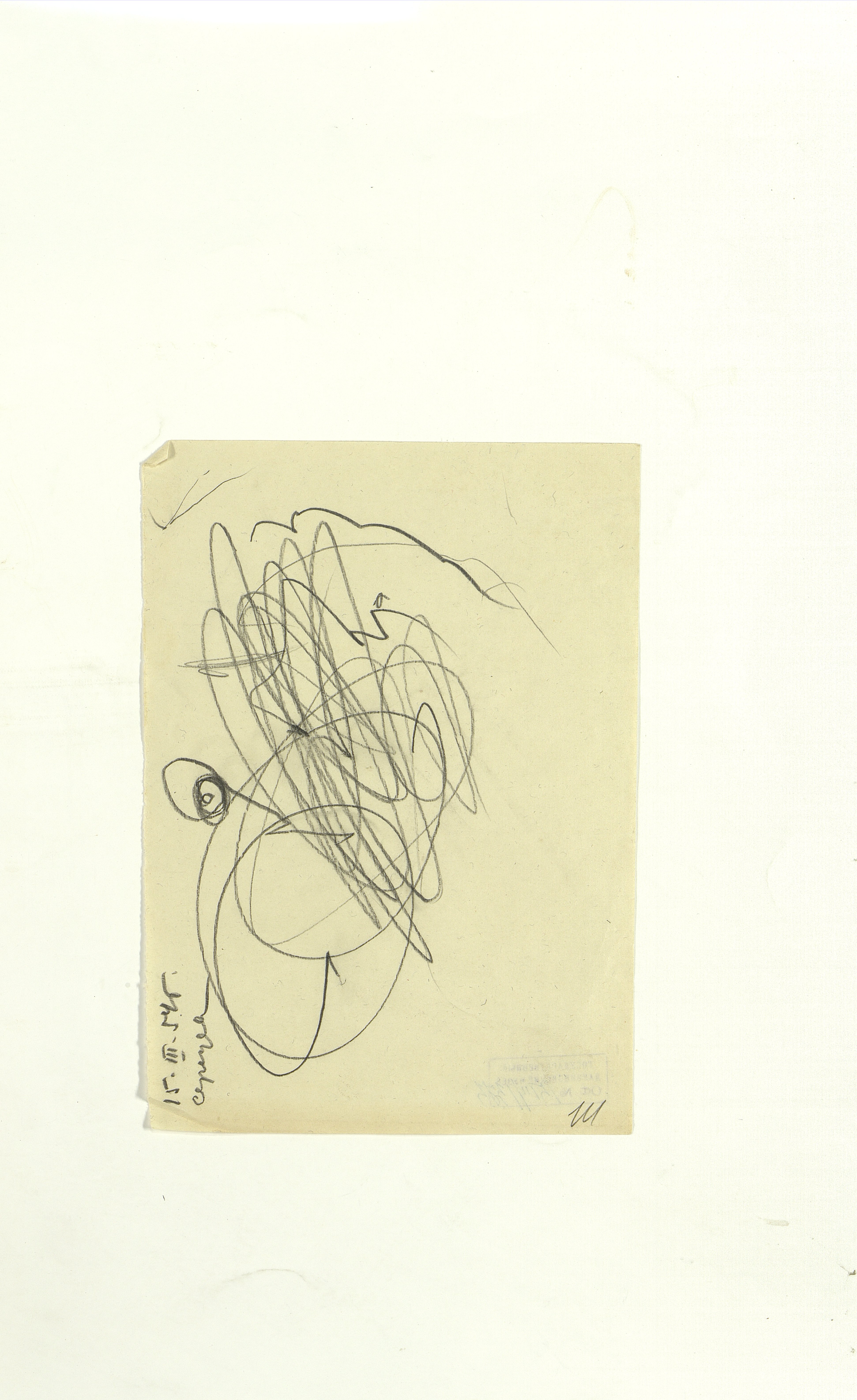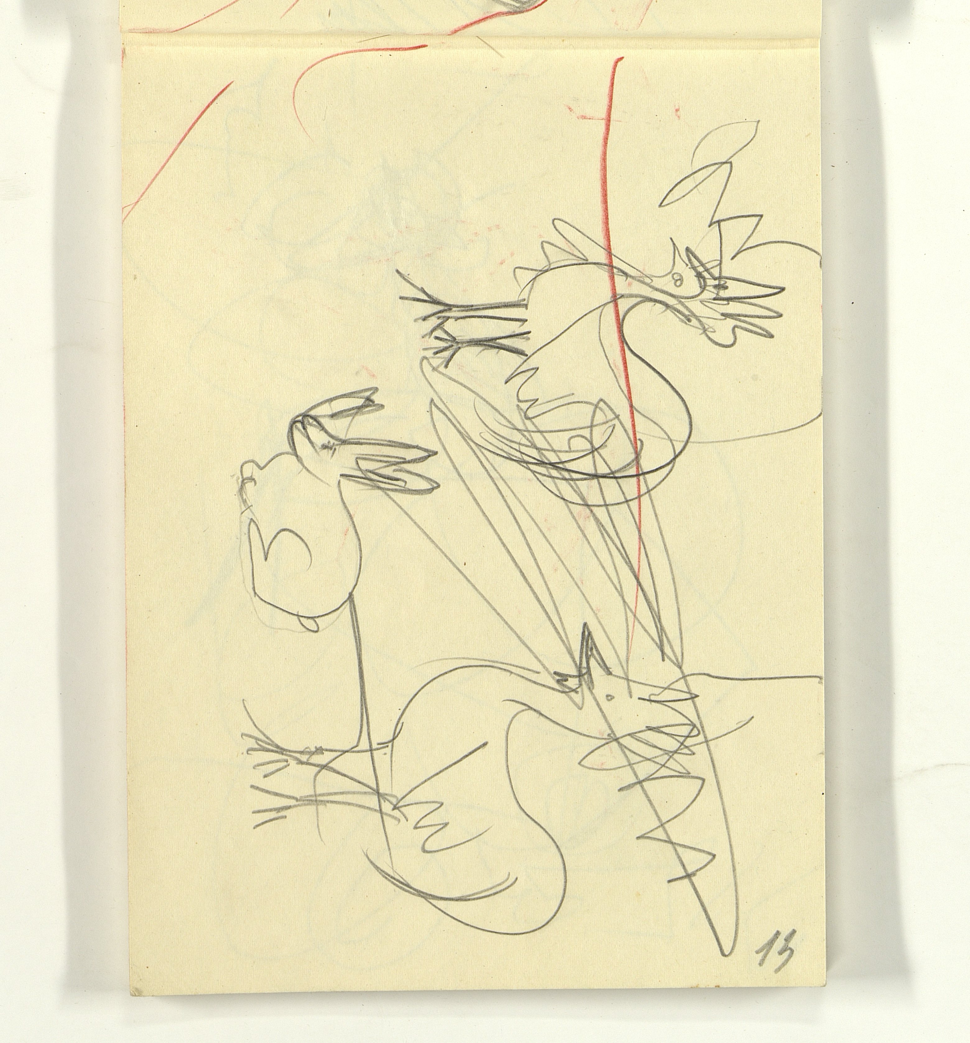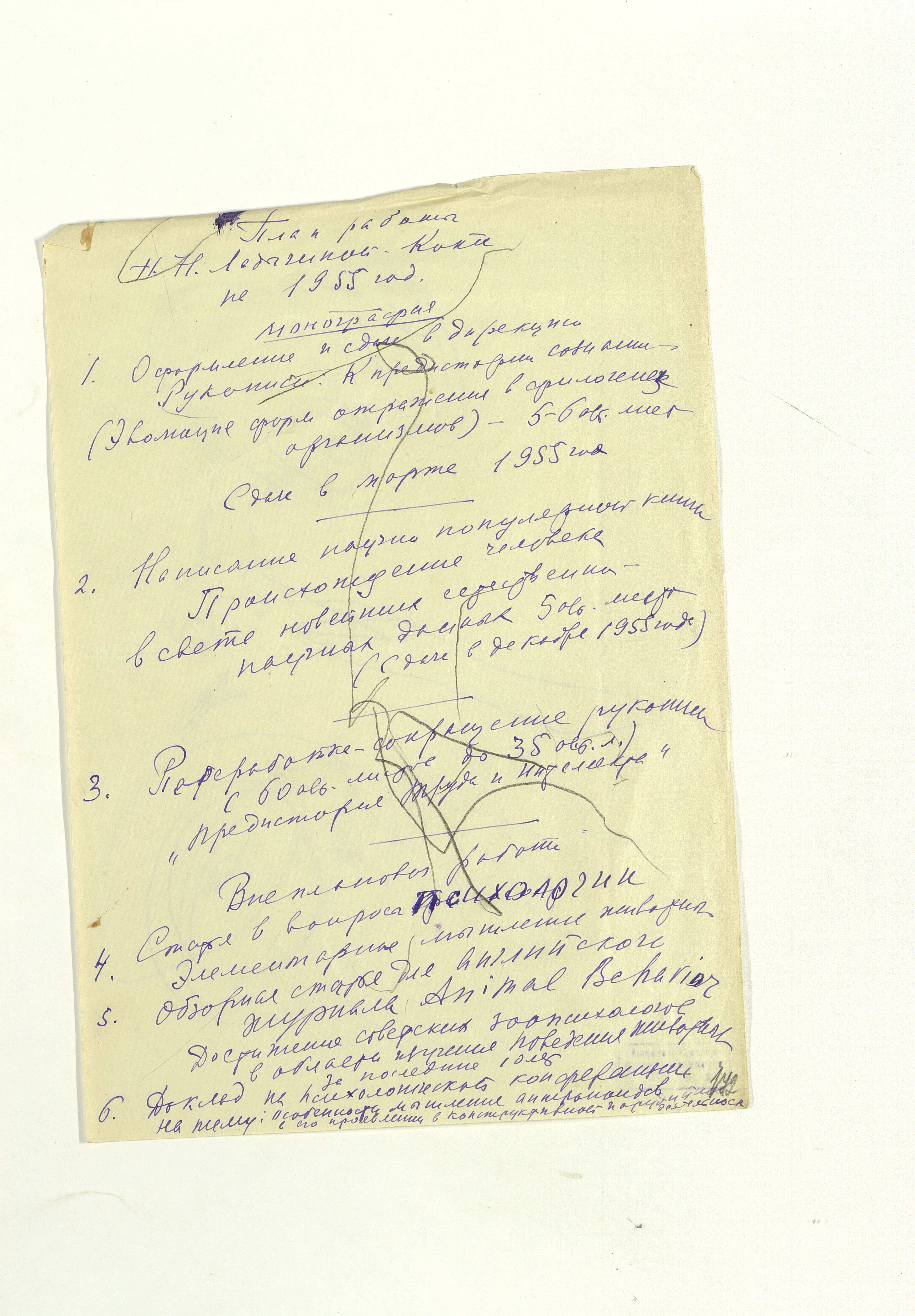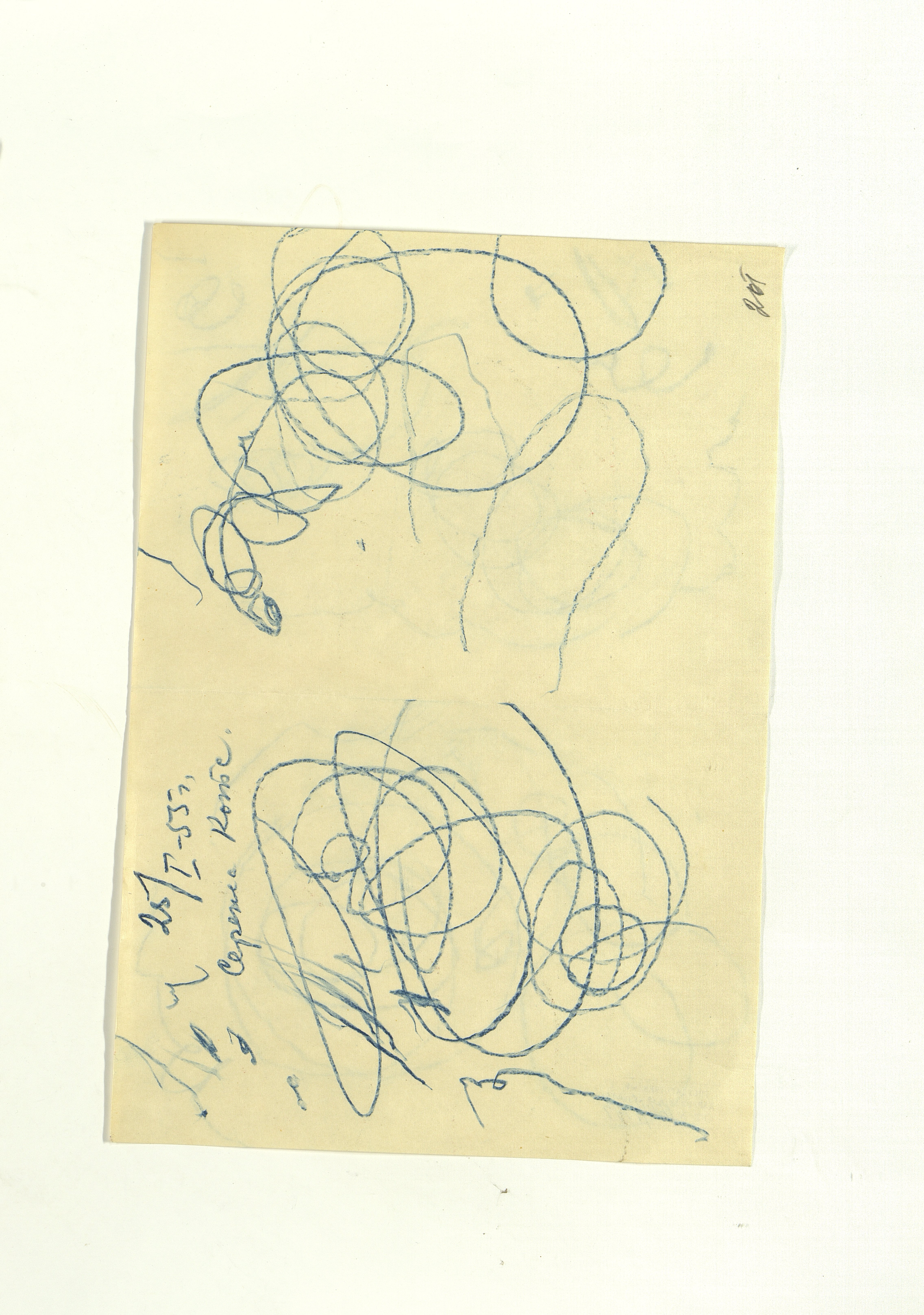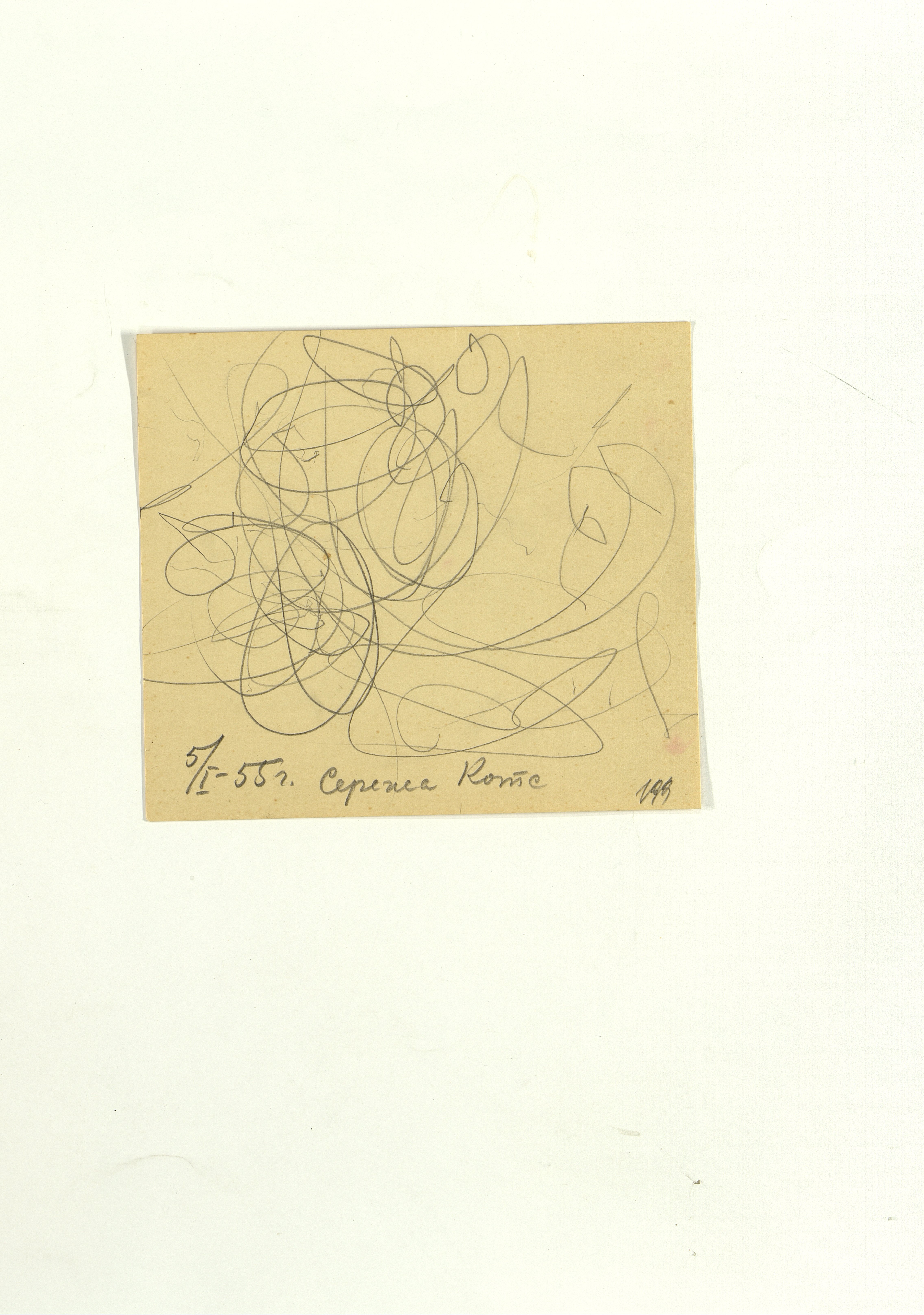 ОФ-15111/1373 Рисунки Сережи Котса (С.Р. Котса), внука Н.Н. Ладыгиной-Котс.. 2 блокнота; отдельные листы. Время создания: б/г; 1954-1956. Полнота: полная. Подлинность: оригинал. Способ воспроизведения: рукопись, бумага. Хранение: хр. №112, стеллаж №2, полка №7. Примечания: 212 лл., из старых поступлений, Без видимых повреждений, г. Москва